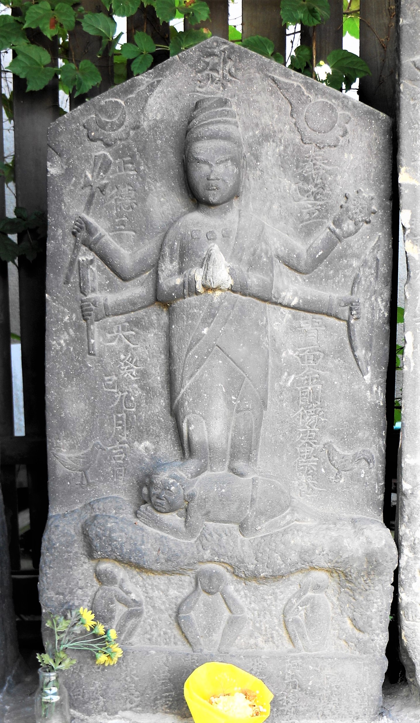 | 備考: | 駒型 青面金剛立像 合掌六臂・日月・邪鬼・二鶏・三猿 奉造立青面金剛像庚申供養,敬白 下川利右衛門,清水武右衛門,阿出川和右衛門,堀之内玄兵衛,高橋伝兵衛、ら |